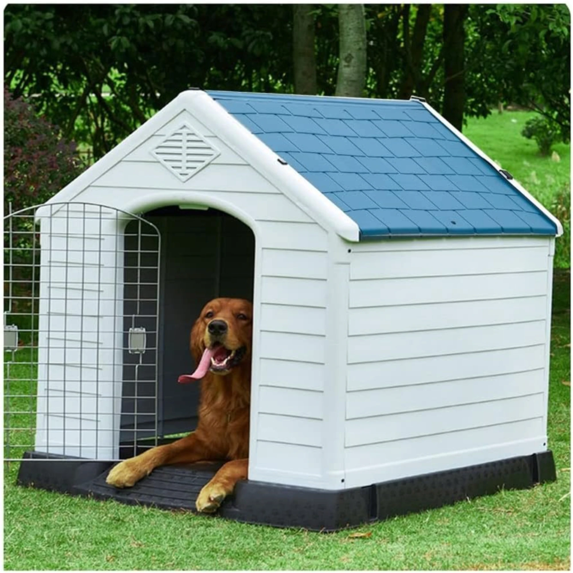 Refugio cómodo para tu perro con esta casa plástica. Su diseño simula una casa real, con piso elevado y buena ventilación, ideal para interiores y exteriores. ¡Perfecta para el jardín!